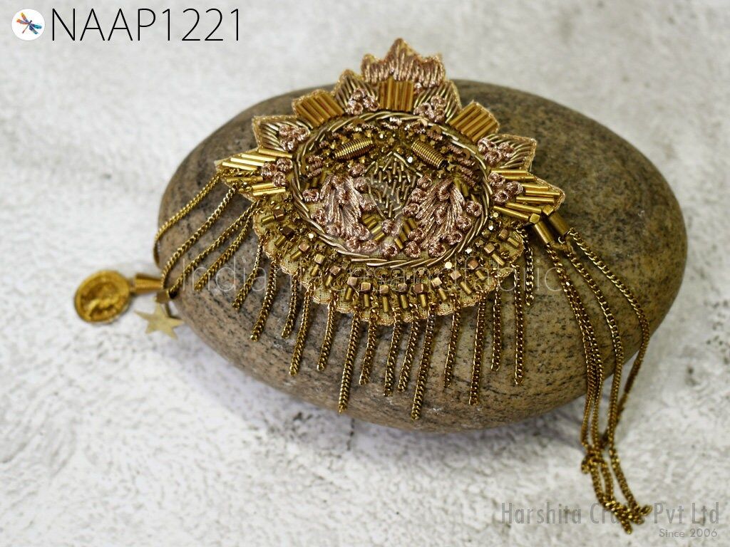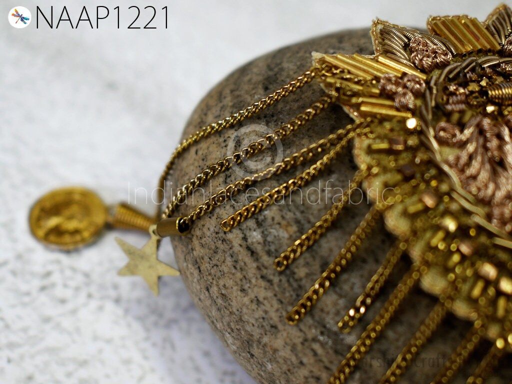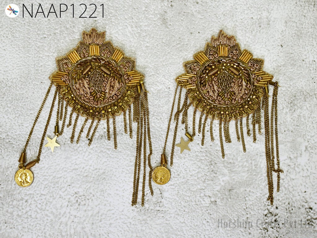 2 Pc Hanging Chains Patches Appliques Indian Handmade Beads Applique Decorative Sewing Dresses Patches DIY Brooch Crafting Costume Dress Decorative Applique, Beaded Appliques, Decorated Beaded Applique, Embroidered Patches, Lehenga Applique