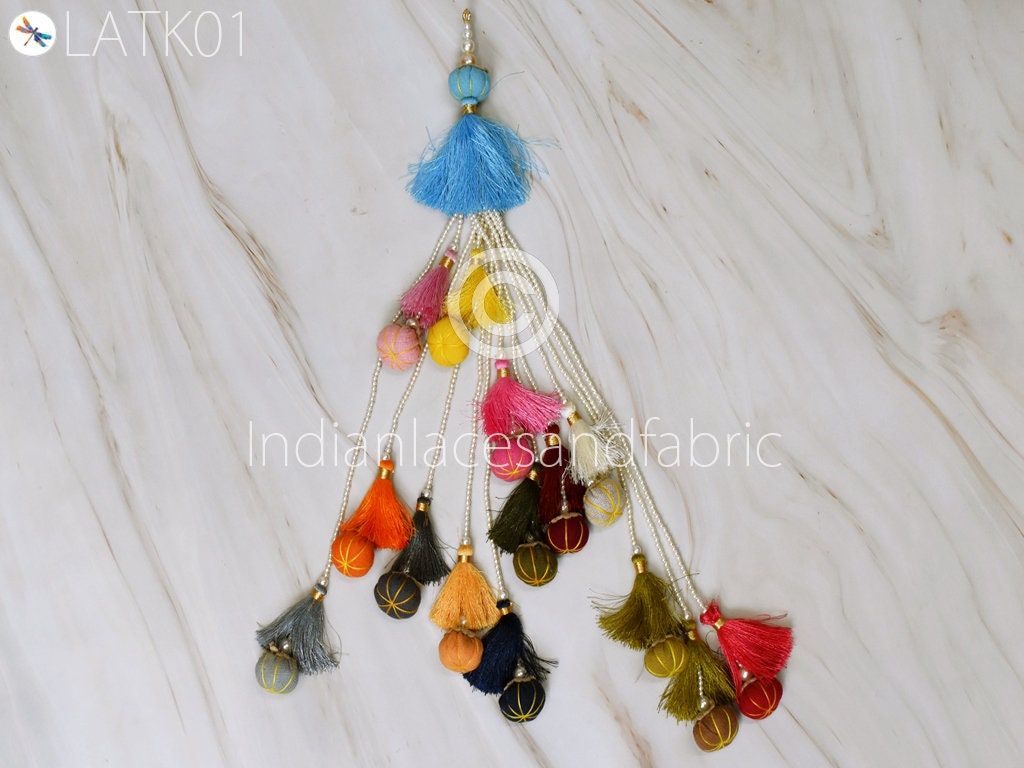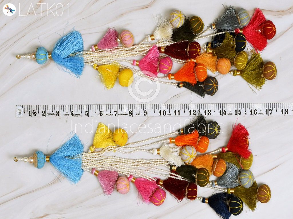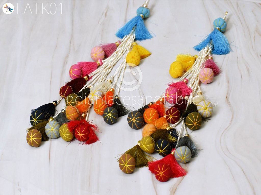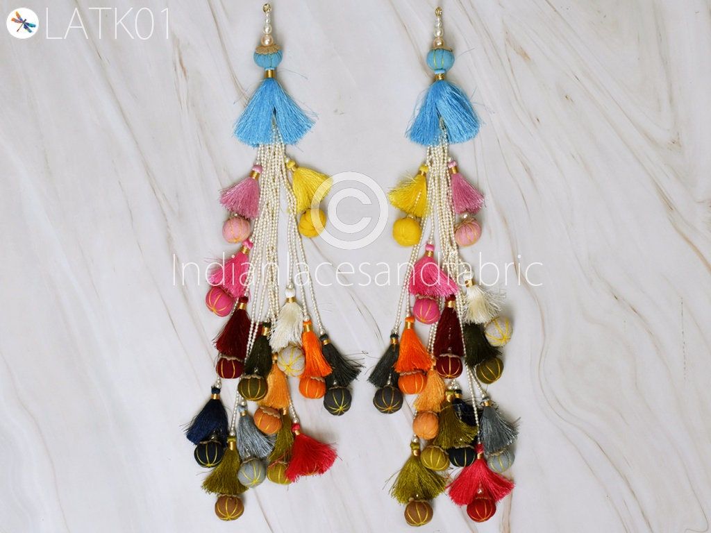 2 Pcs Handmade Beaded Viscose Tassel Latkan: Indian Embellishment Charms