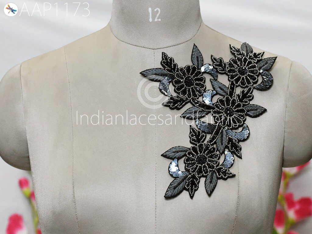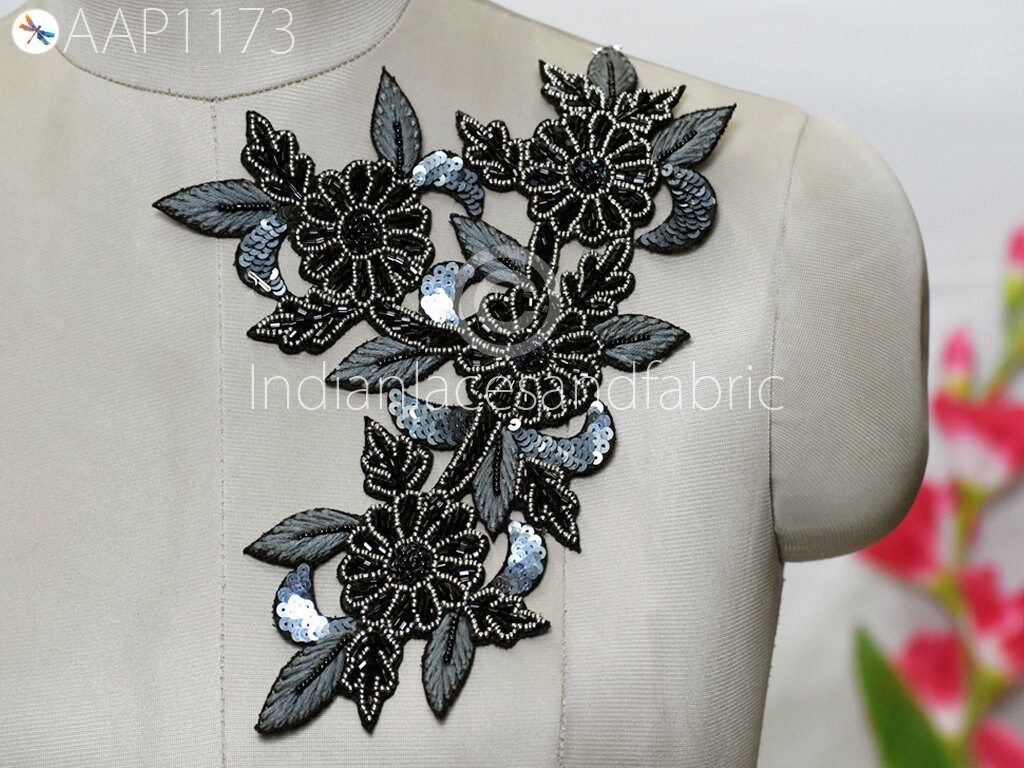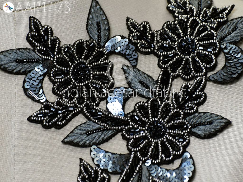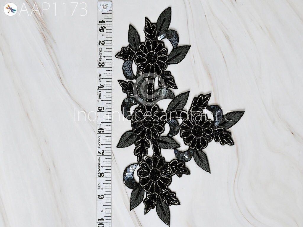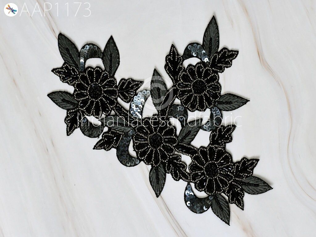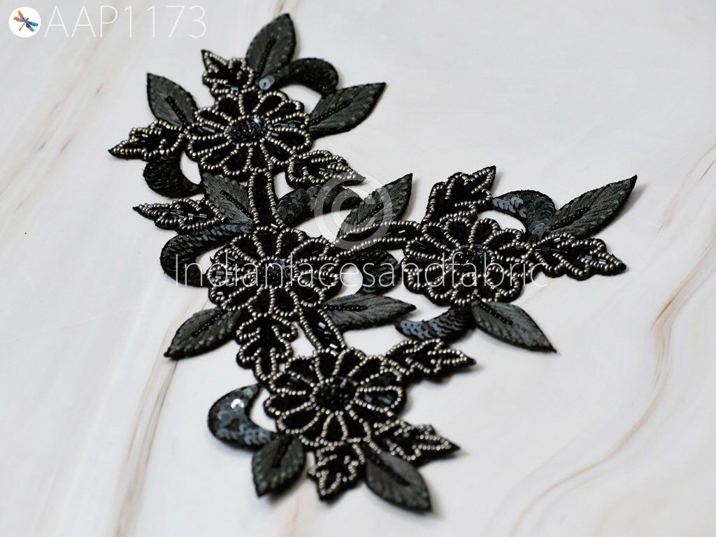 2 Piece Indian Black Beaded Appliques Patch Sewing Accessories Dresses Applique DIY Crafting Handcrafted Appliques Scrap booking Appliques