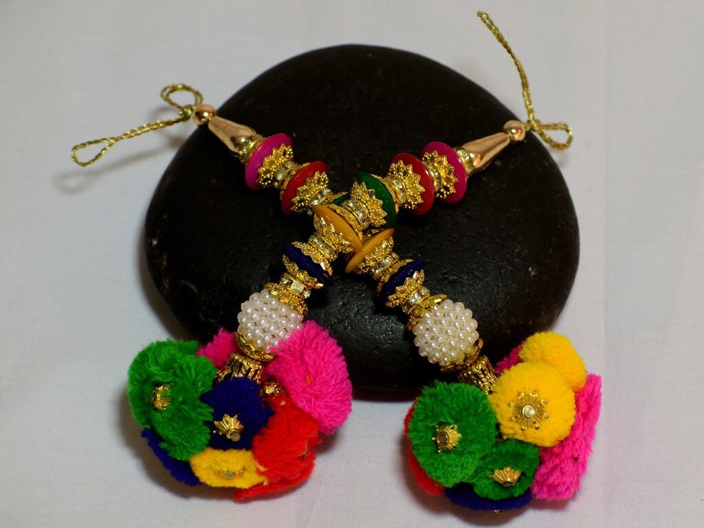 A Pair of Banjara Style Handmade Authentic Accessory. It is made with pom-poms, Mirror Work.