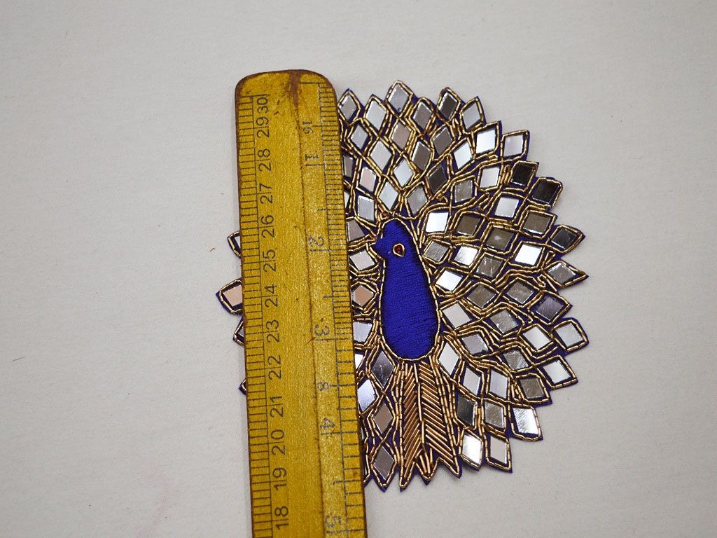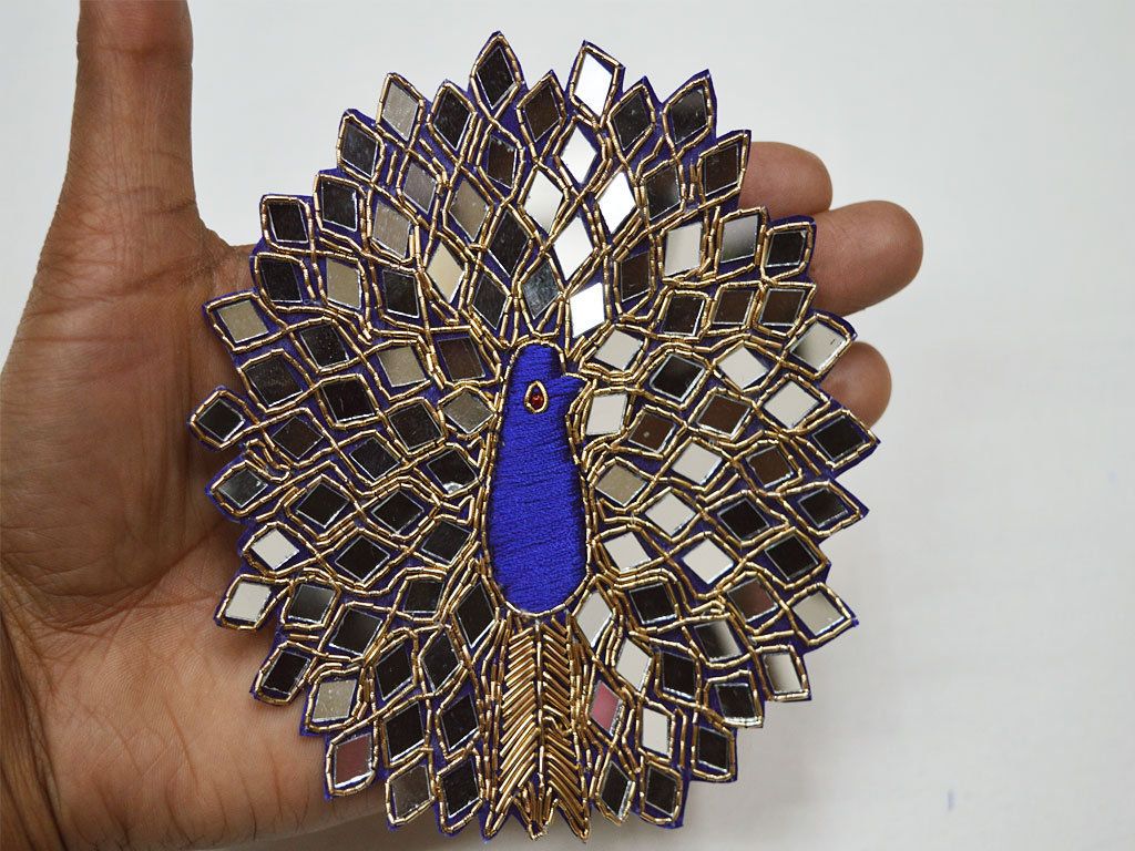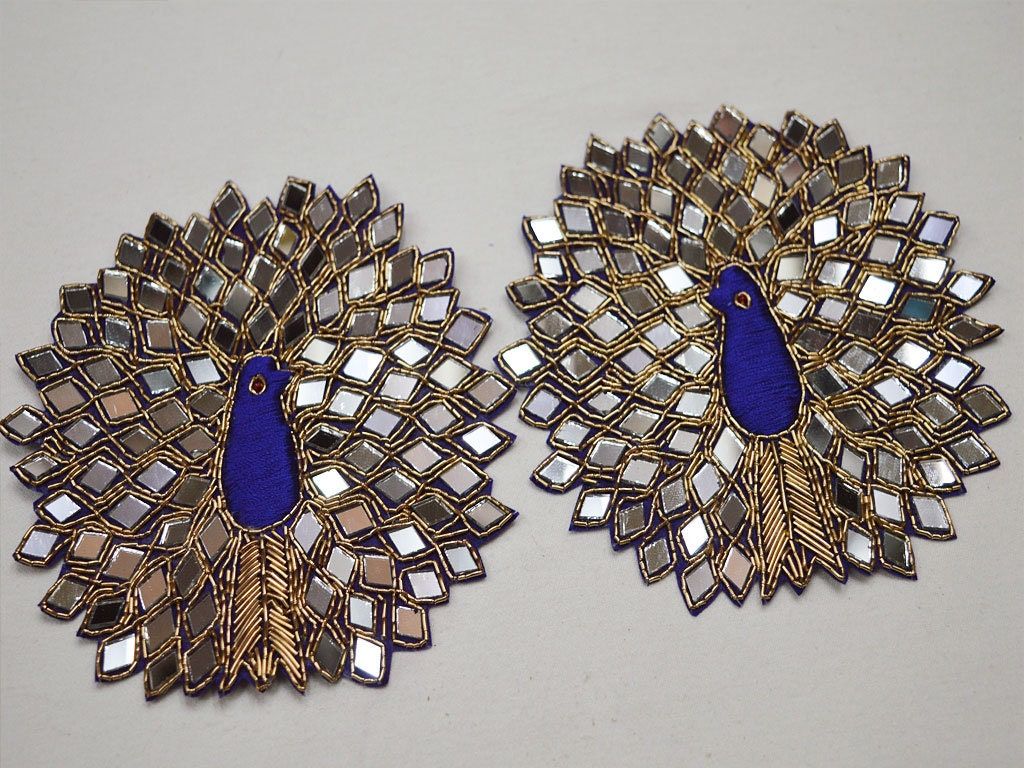 5 Pieces Handmade Peacock Patch Bridal Dress Decor Sewing Mirror Beaded Appliques Embroidered Blue Color Sewing Designer Crafting Patches, Applique Embroidered, Sewing Designer, Handmade Dress Patch, feather design appliques, wedding dresses, online appliqué, sew on patches, handmade patches, appliques for gown, embroidery