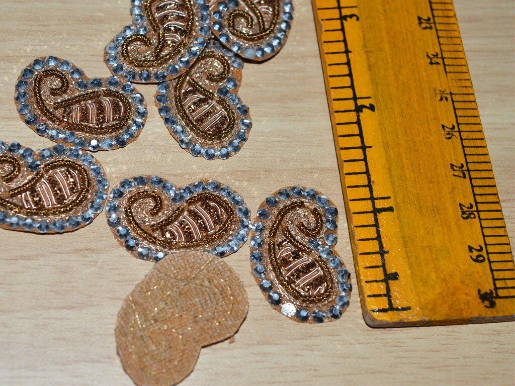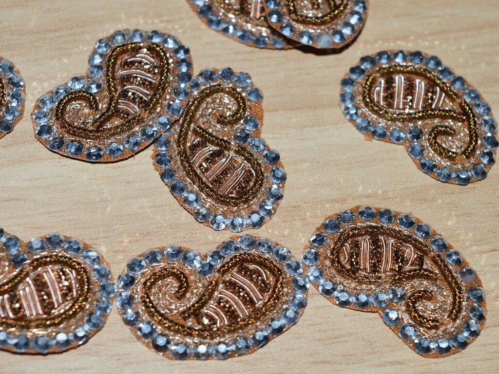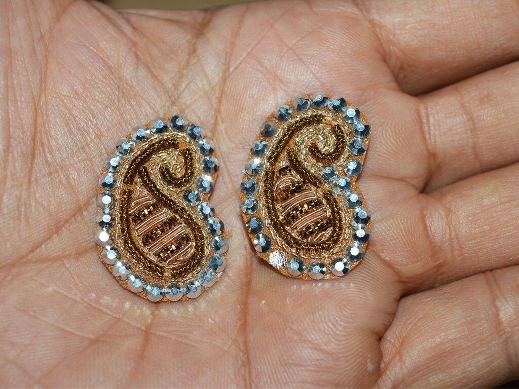 50 Golden Paisley Appliques: Zari Work Rhinestone Embellishments