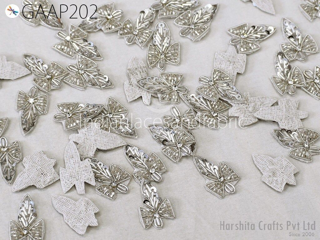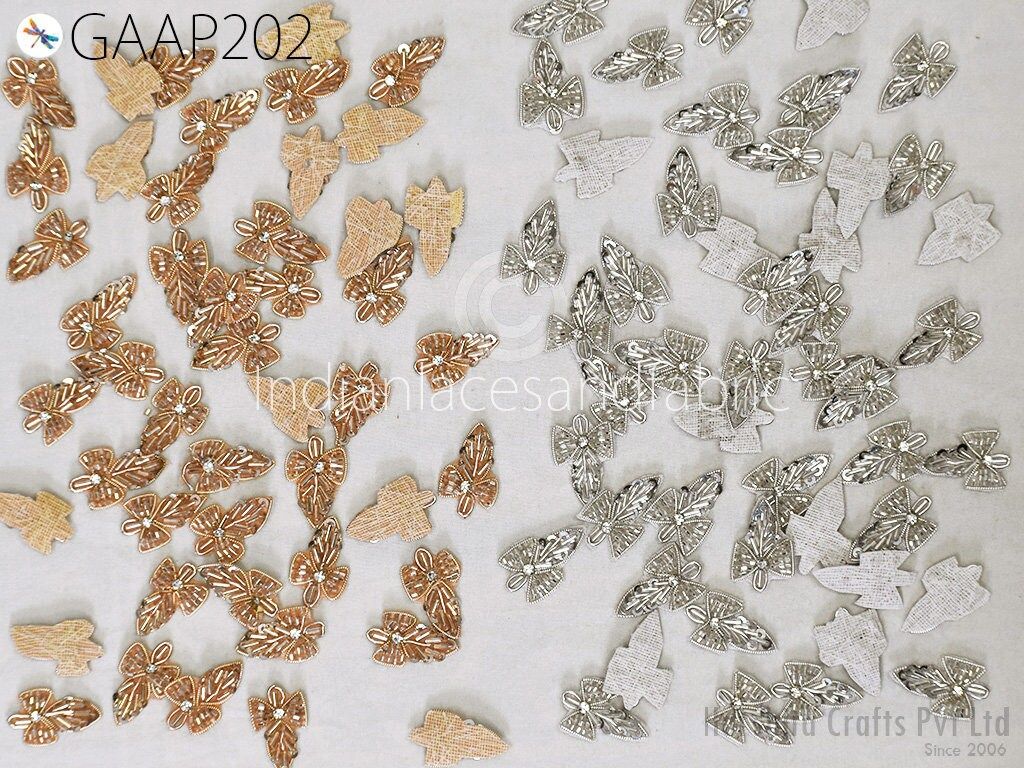 50 pc Handmade Beaded Appliques, Floral Indian Patches, Sewing Wedding Dresses, Handcrafted Beaded Patch, DIY Crafting Supply Embellishment