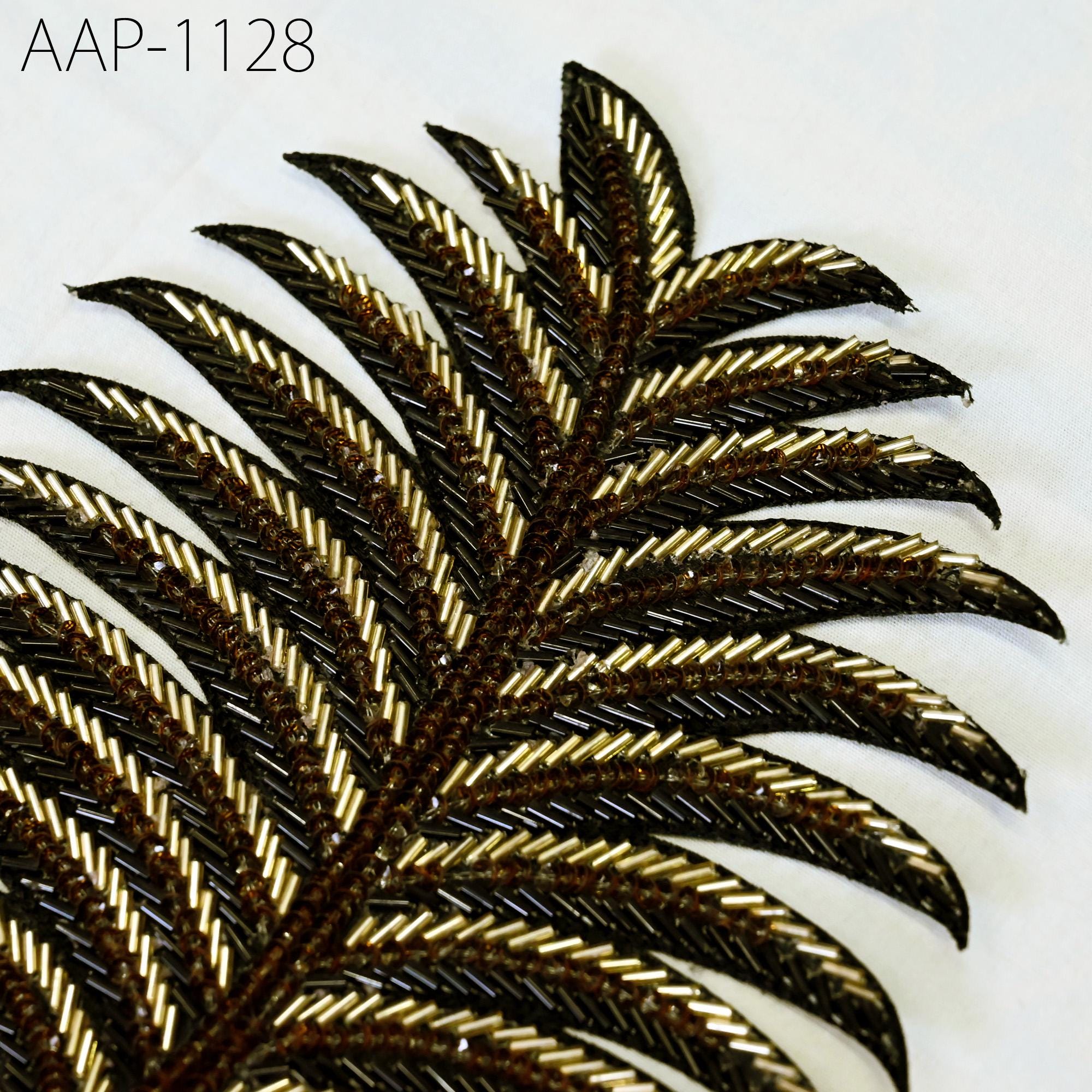 Beaded Floral Applique Patches: Black & Gold Sew-On Embellishments (9 Inches, 2 Piece Set)
