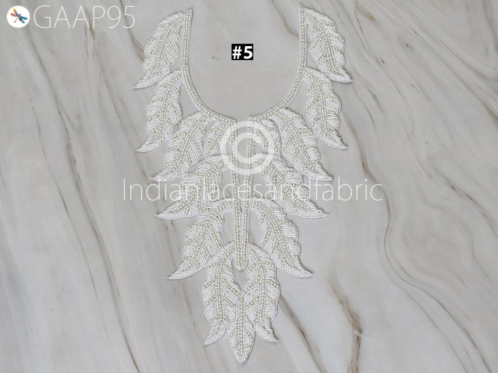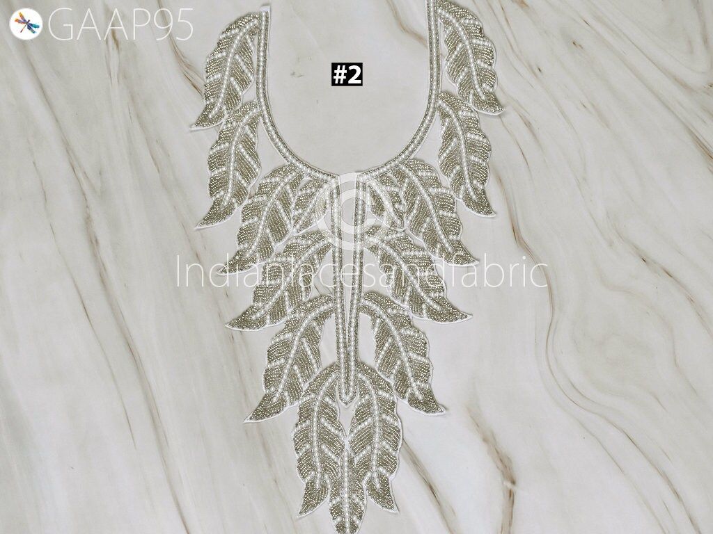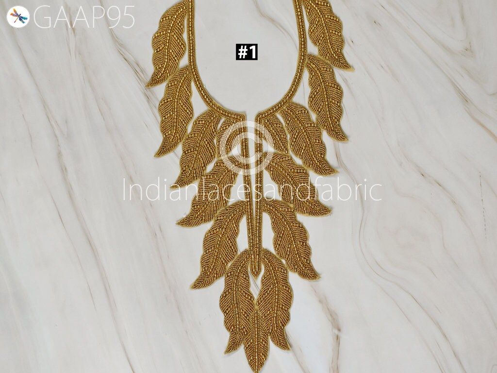 1 Piece Beaded Neckline Patches Indian Decorative Wedding Bridal Dresses Neck Patches Collar Handcrafted Embroidered Applique DIY Crafting Lehenga Beaded Patches, Decorative Beaded Appliques, Festive Wear Patches, Decorative Zari Patches.