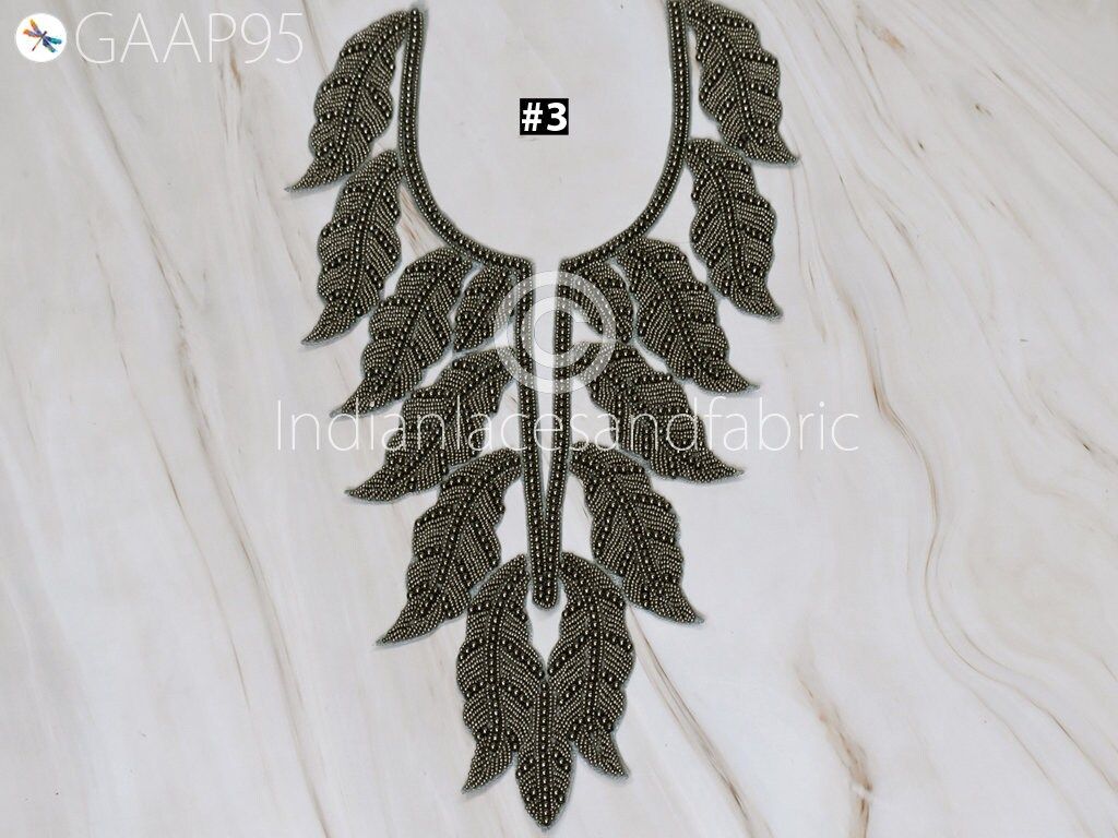 Beaded Neckline Patch: Handcrafted Indian Embroidered Applique (16x10 Inches)