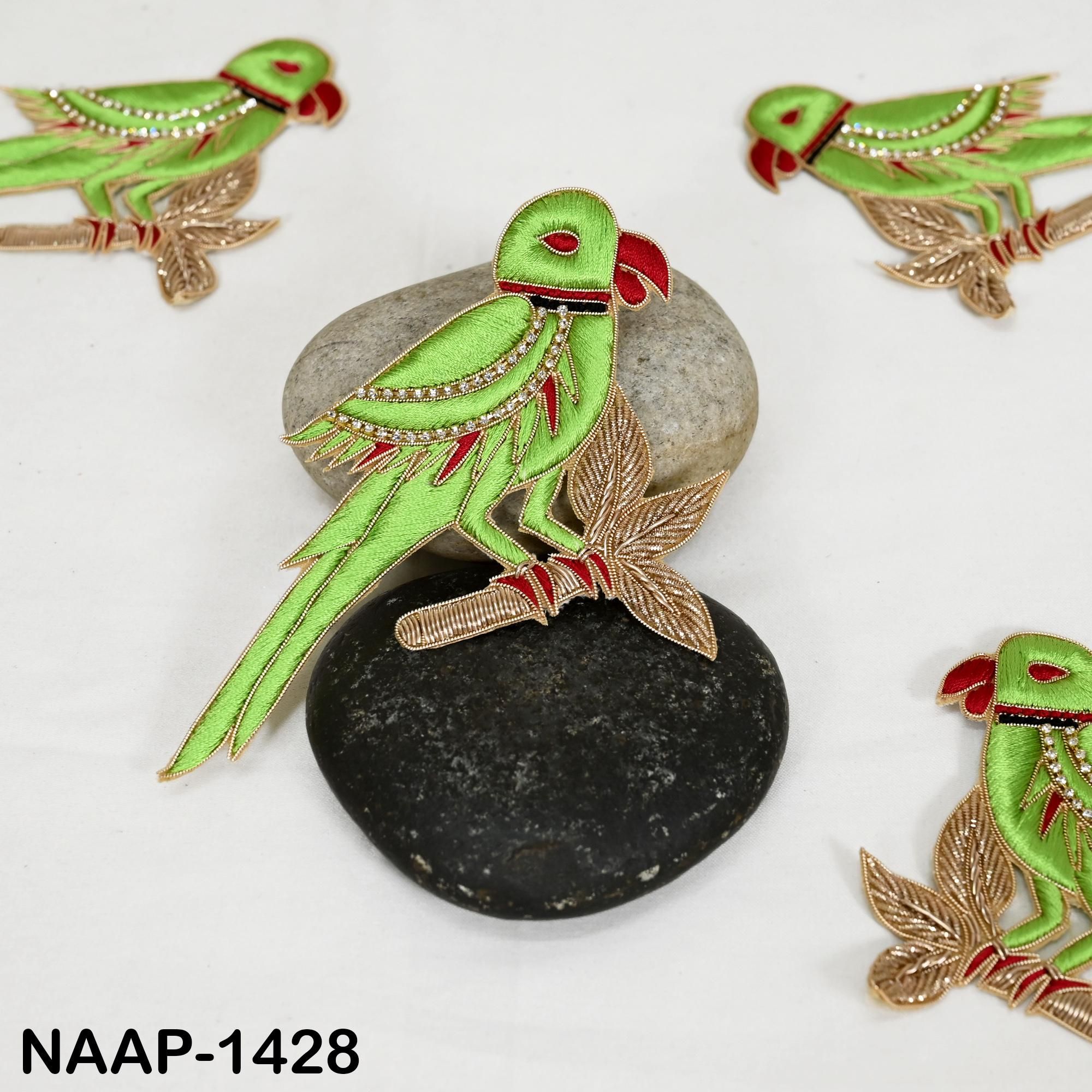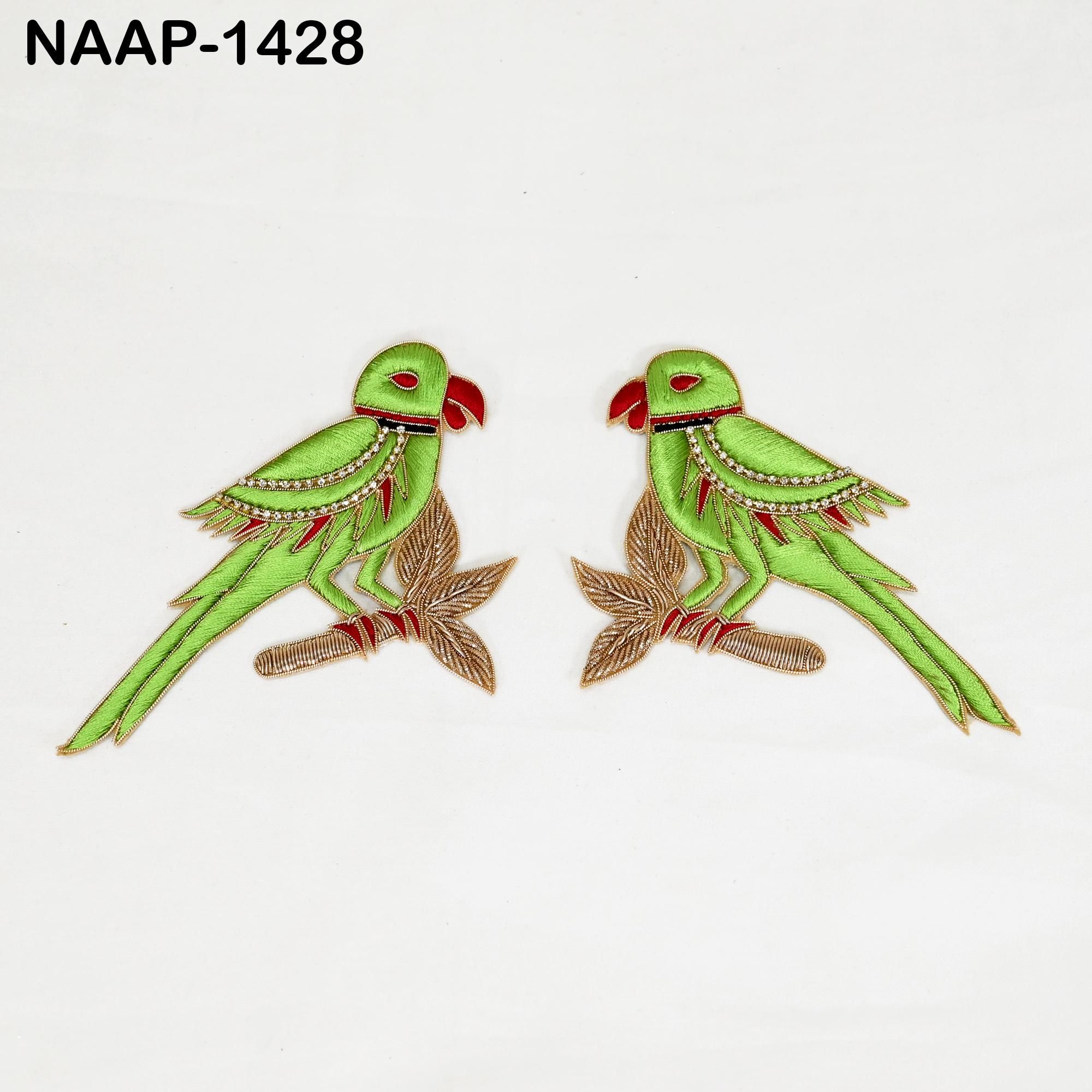 4 Piece Exclusive Parrot Patches, Handmade Applique in Red, Green and Gold Color are extremely beautiful applique (sew on applique or you can paste it with fabric glue) in golden finish which gives the exclusive look. Patch is decorated with Zardozi work, Silk Thread work to make it a perfect piece as embellishment