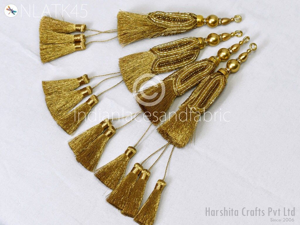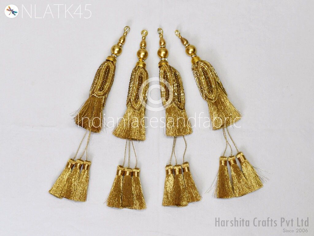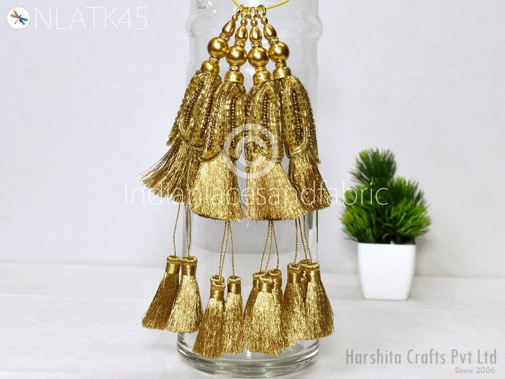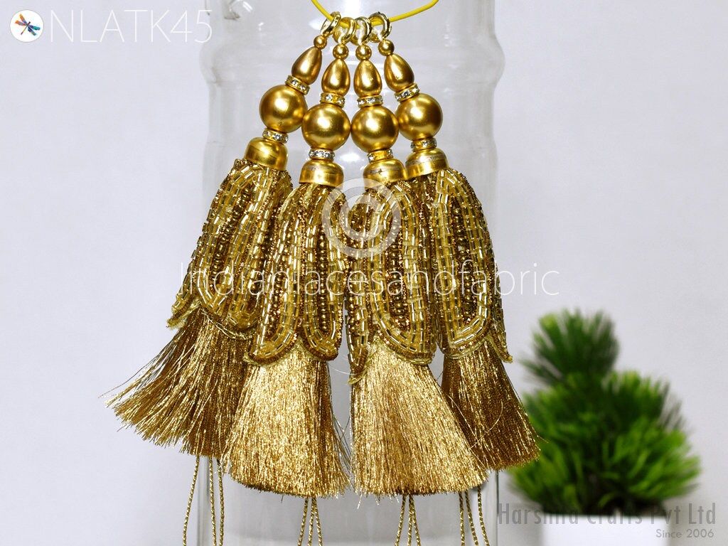 Gold Beaded Tassels: Indian Handmade Jewelry Charms (8 Pc)