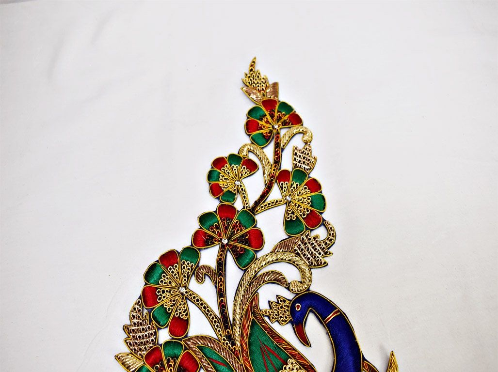 🔸Add artisan charm and bold elegance to your next creation—order your Peacock Zardozi Appliqués today!