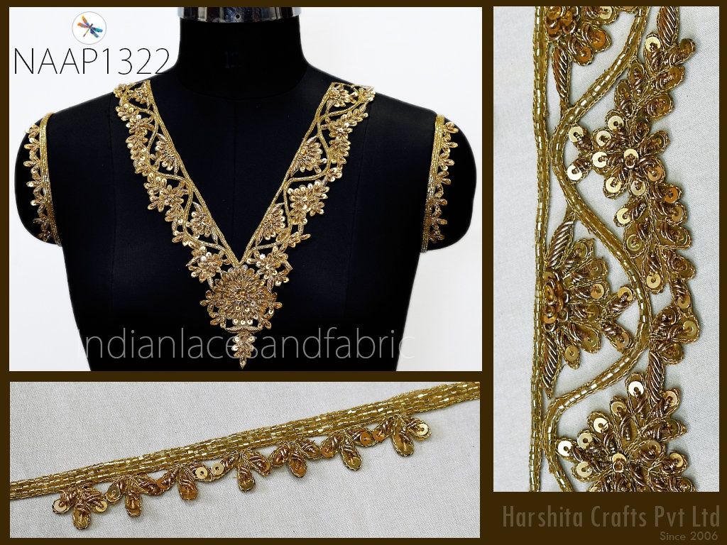 Handcrafted Indian Zardosi Neck for Dresses, Christmas Neckline, Neckline for dress, Headband Neckline, Neckline designs, Handcrafted Neckline, Fancy Neck, Clothing Accessories.