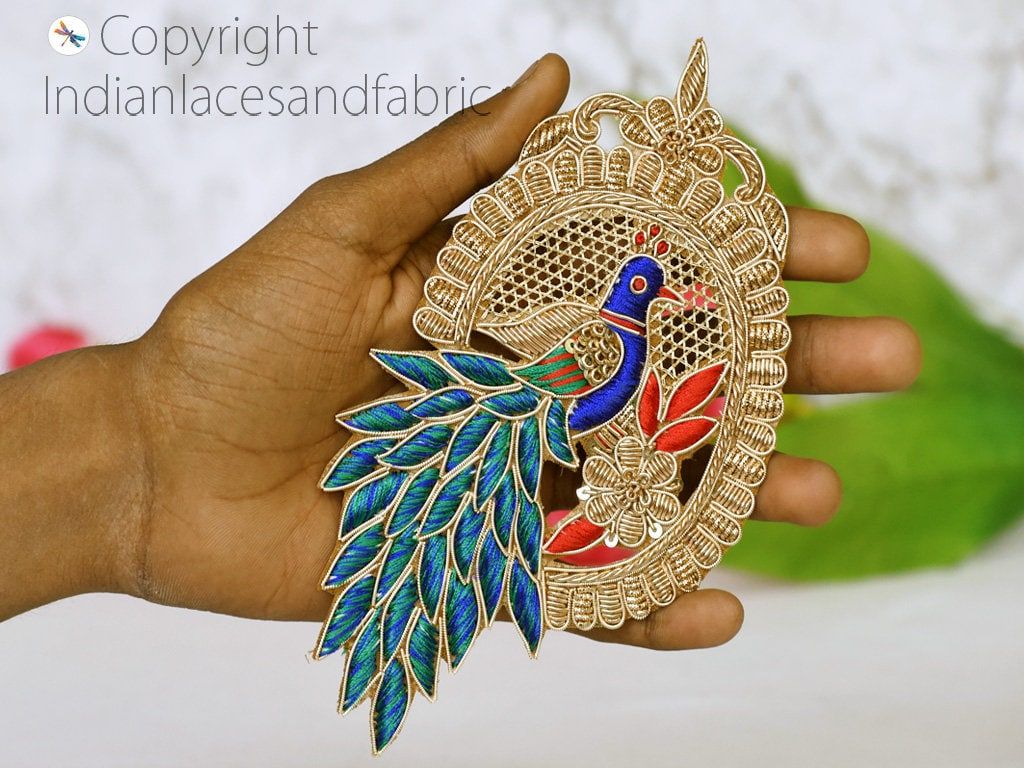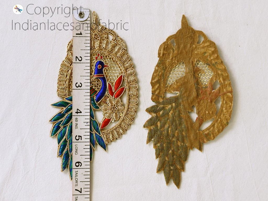 Peacock Mandala Gold Indian Patches Appliques Dresses Handmade Thread Embroidered Applique Decorative Sewing Crafting Sewing Clothing Accessories, Indian Patches Appliques, Christmas applique, Applique for dress, Headband Applique, applique designs, Handcrafted Appliques
