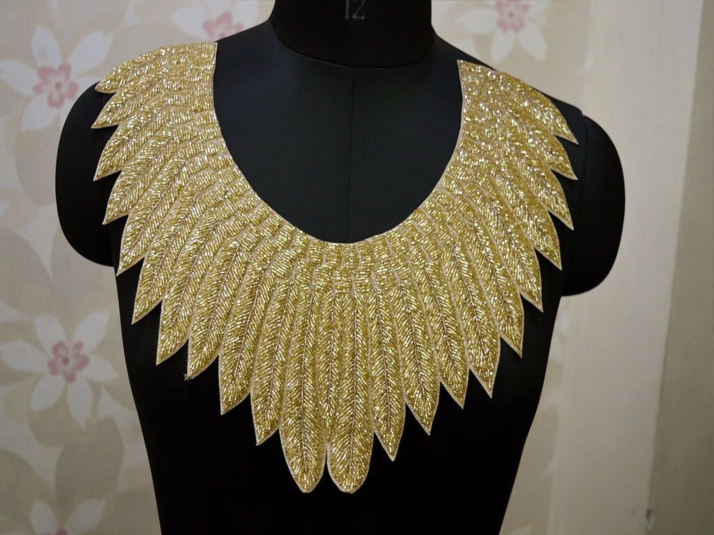Beaded Neck Patches Indian Decorative Neckline Patches Gold Collar HandCrafted Embroidered Applique Crafting Decorated Designer Dresses Neck, Bridal Patches, Lehenga Beaded Patches, Decorative Beaded Patches, Decorative Zari Appliques.