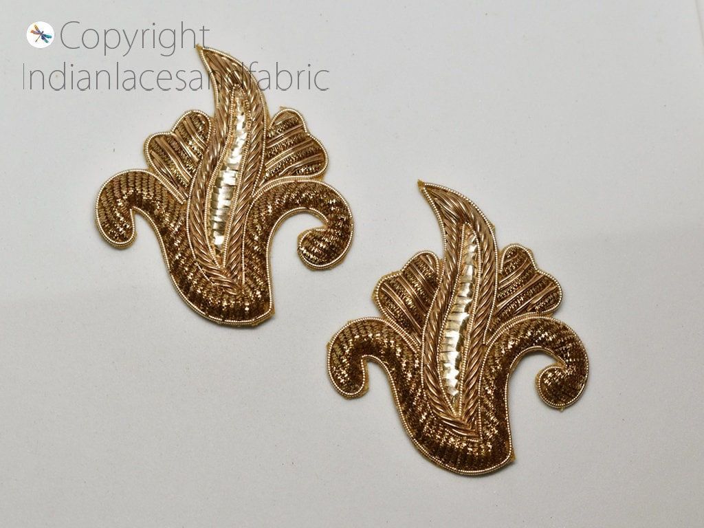 Handcrafted Gold Bullion Applique Patches (20 pcs) 2.5 inch : Indian Wedding Dress Embellishments