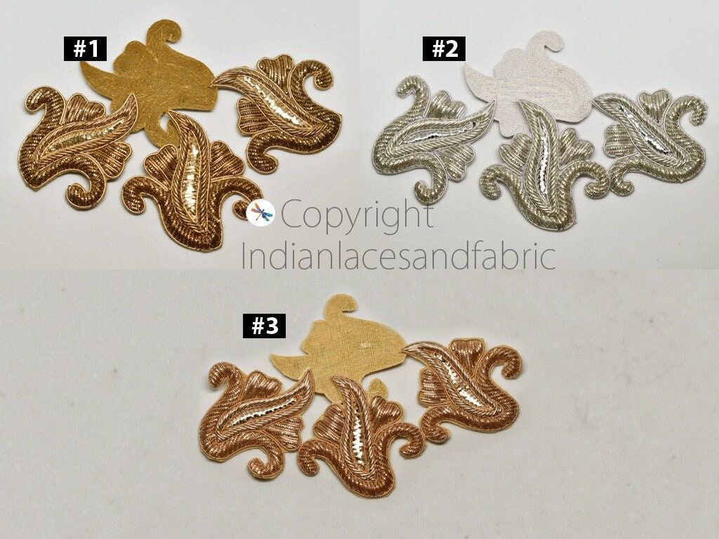 20 Piece Indian Decorative Bullion Applique Patches Handcrafted Embellishments Sewing Crafting Golden Wedding Dresses Scrapbooking Home Decor, applique for dress, wedding dress patch, bridal applique, design costumes patch, dresses appliques