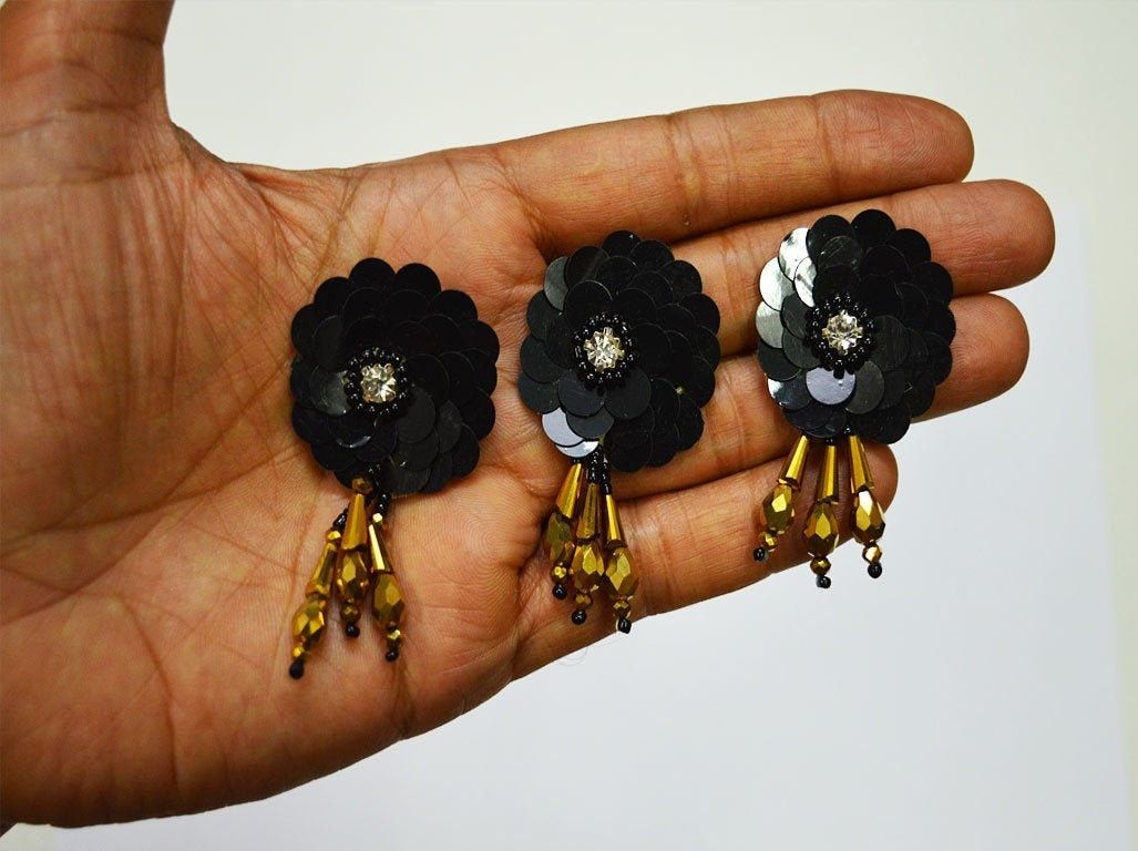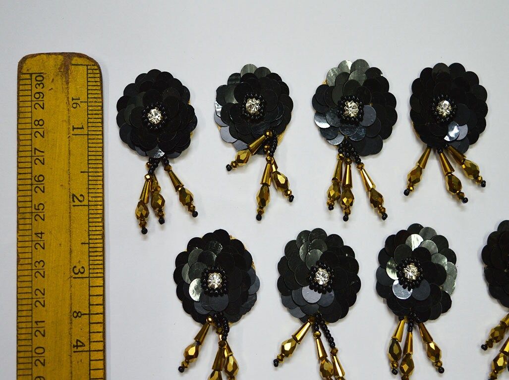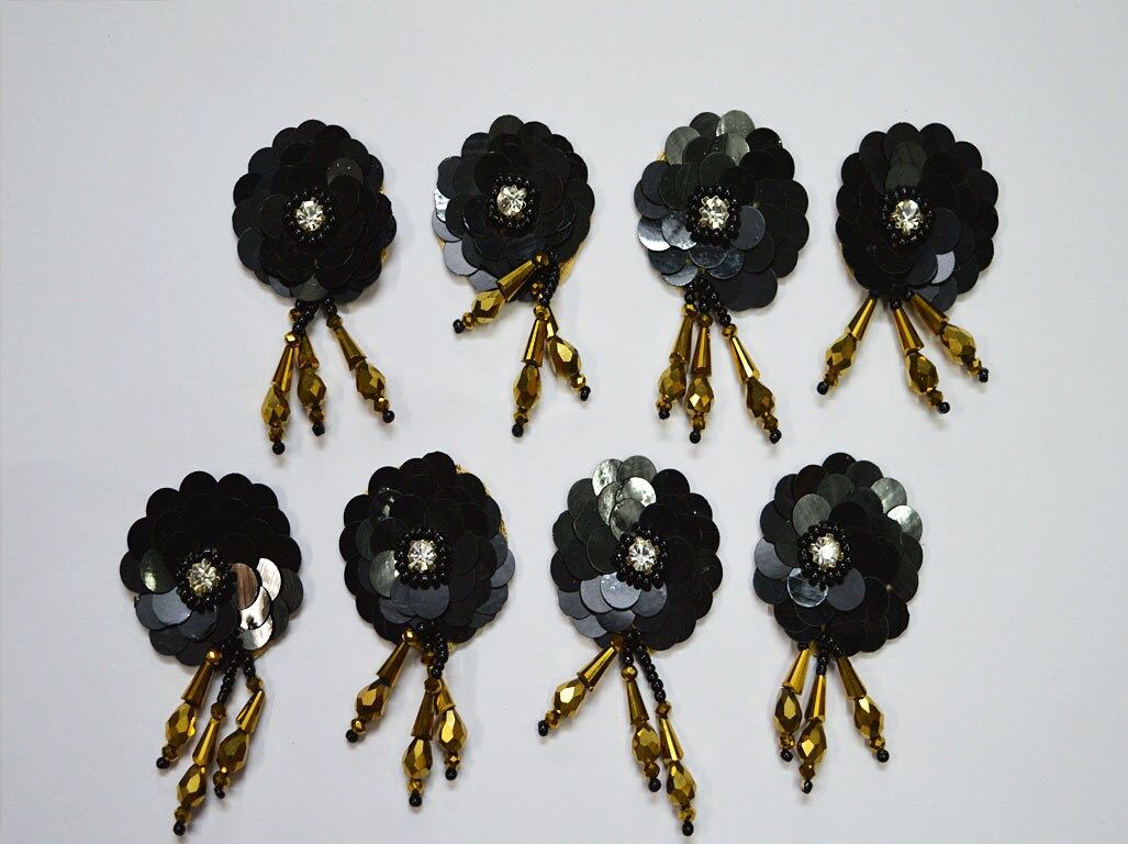 20 Pieces Handmade Black Floral Patches | Indian Appliques | Dresses Thread Embroidered Applique | Decorative Sewing Patches Crafting Sewing, Top Applique, Festive Wear Appliques, Designer Appliques, Floral Appliques, Sequins work appliques.
