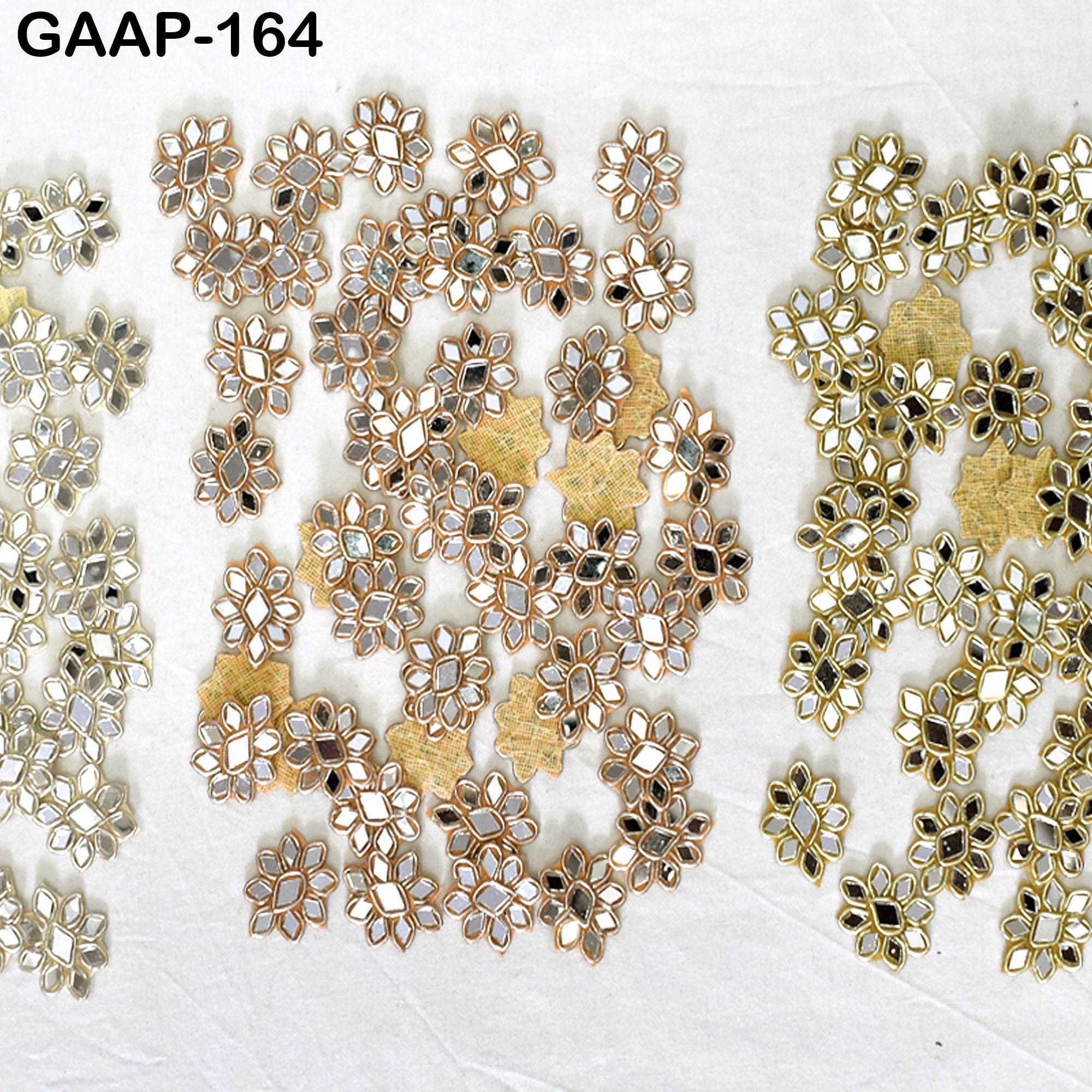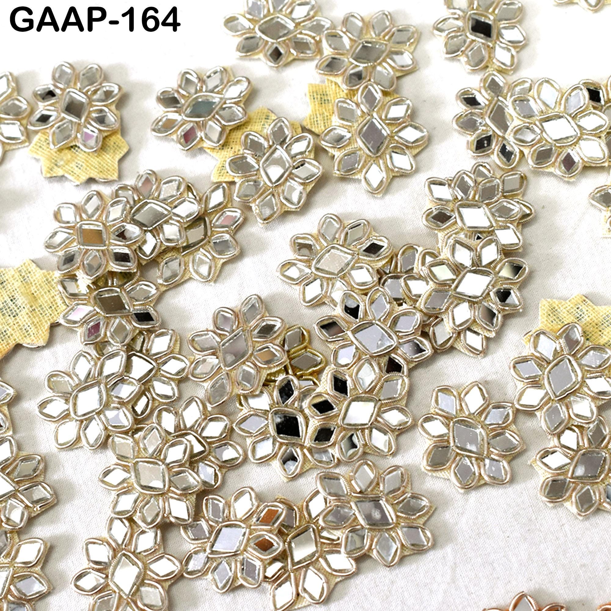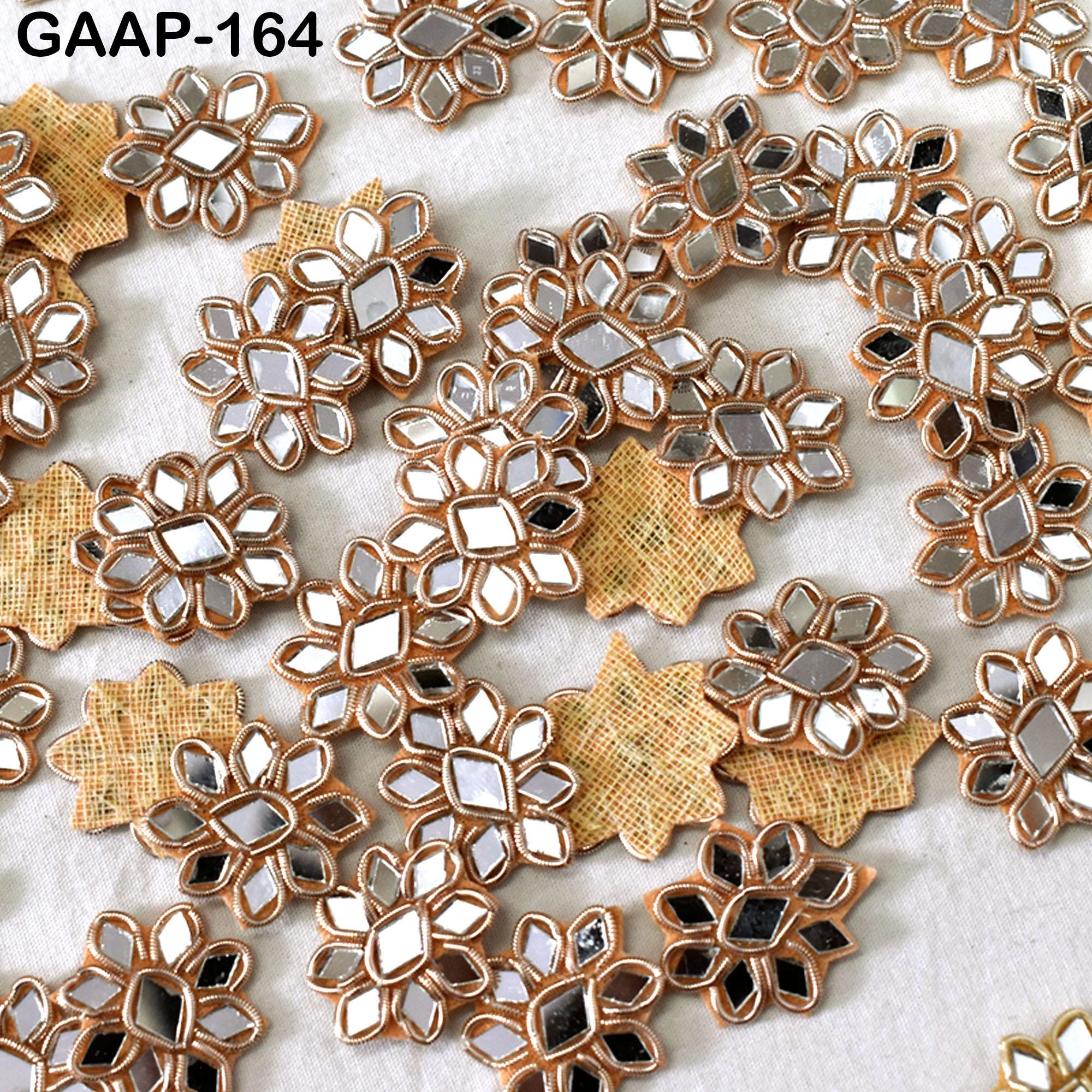 Handmade Floral Applique Patches (Set of 50): Gold Zardozi & Real Mirror Embellishments