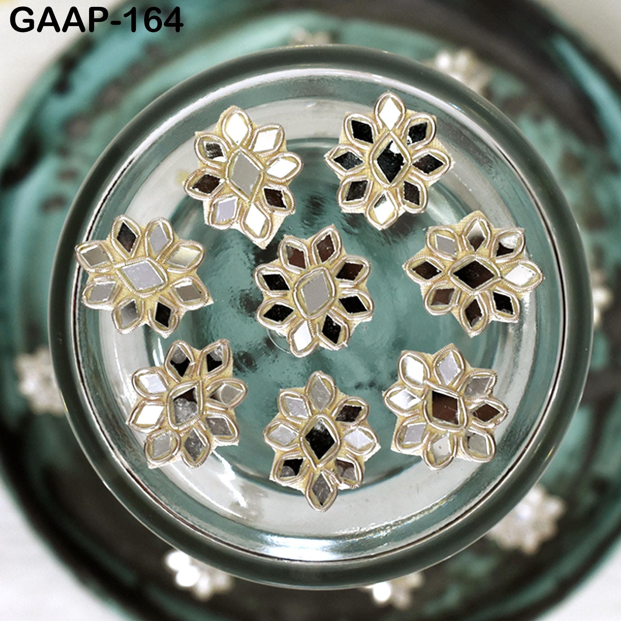 Elevate your creative projects with this set of 50 Indian handmade floral applique patches. Each piece showcases intricate gold Zardozi embroidery, Real Mirror work perfect for adding a touch of elegance to bridal wear, DIY crafts, sewing projects, and home decor. Crafted in India by expert artisans, each piece is an original artwork of traditional craftsmanship.