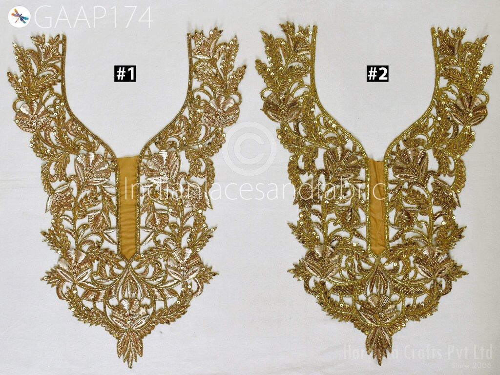 Crafting Zardosi Gold Neck Patches By 1 Piece Handcrafted Indian Decorated Designer Neckline Gown Sequins Work Patch Clothing Accessories, Patches design, Wholesale Neckline, Sewing Patches, Decorated Neck Patches, Neck For Dresses, Fancy Neck, Handcrafted Patches, Patches by 1 Pieces, Beautiful Neck Patches, Stunning Patches, Patches For Dresses
