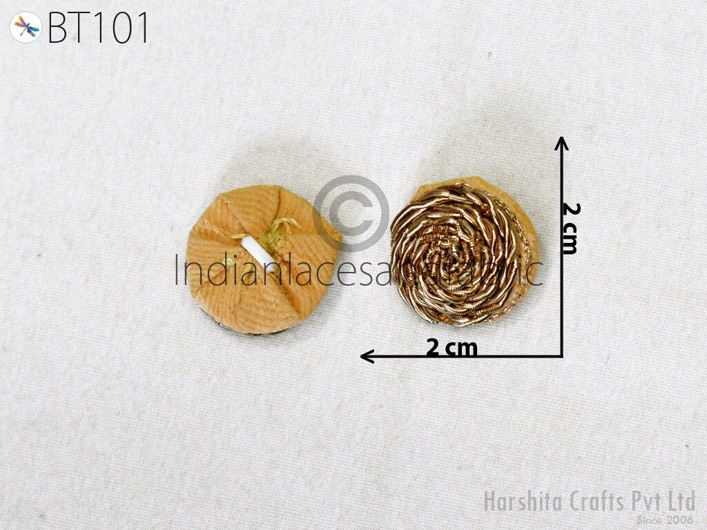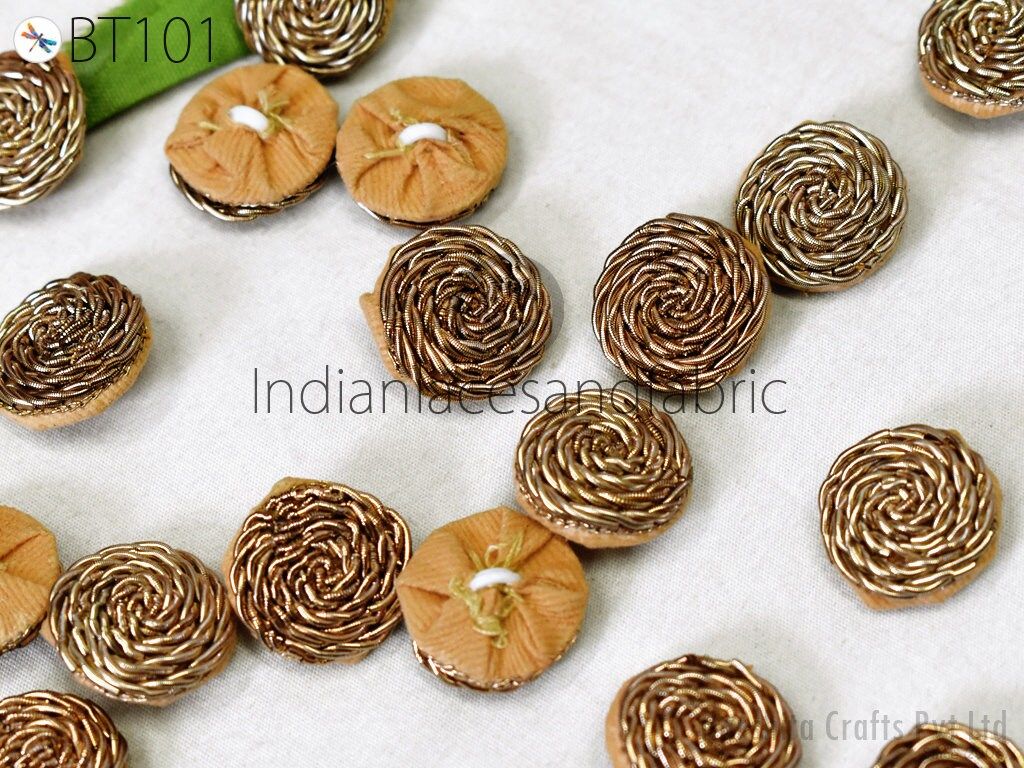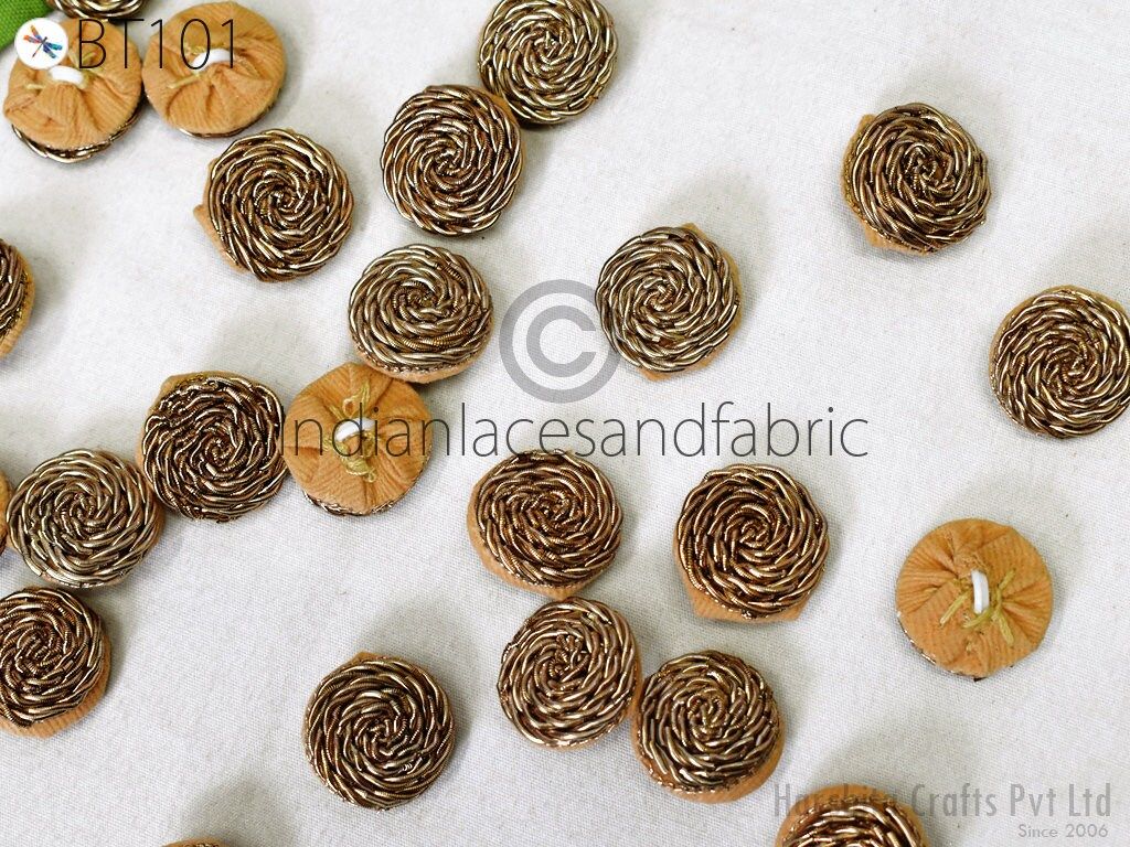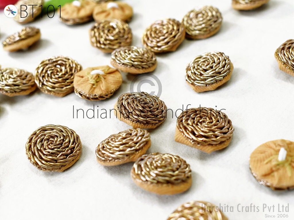 Handmade Zardozi Gold Buttons: Indian Embroidered Embellishments (12 Pieces)