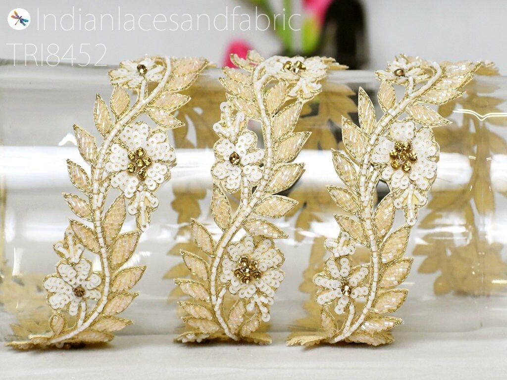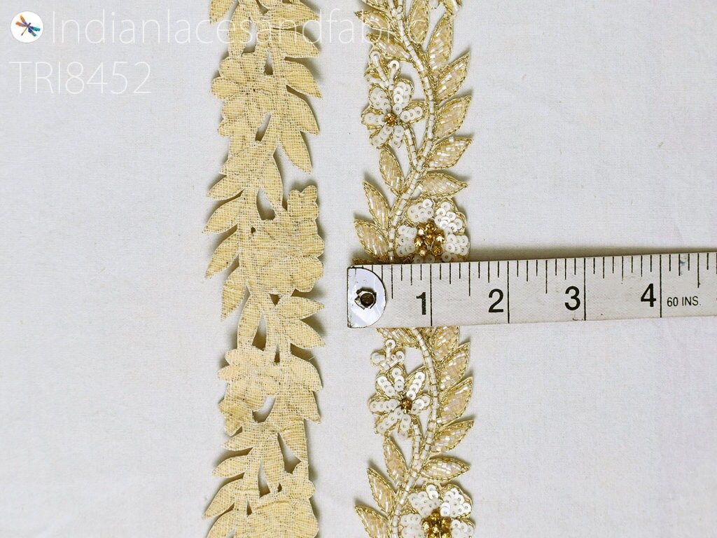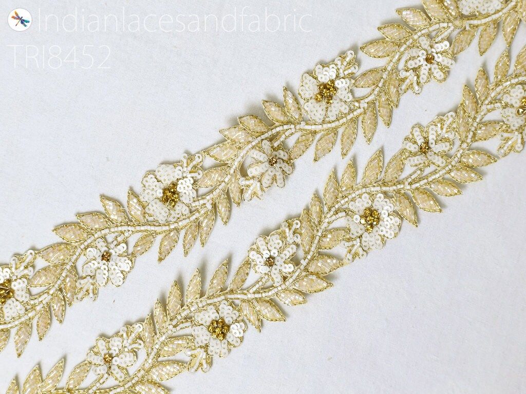 Floral Ivory Zardozi Trim By 3 Yard Indian Handcrafted Sari Border Crafting Saree Ribbon Embroidered Zari Lace Handmade Trimmings Costumes, Dress Making trim, Wedding Wear Lace, Indian Zari Border, Wedding Trims.
