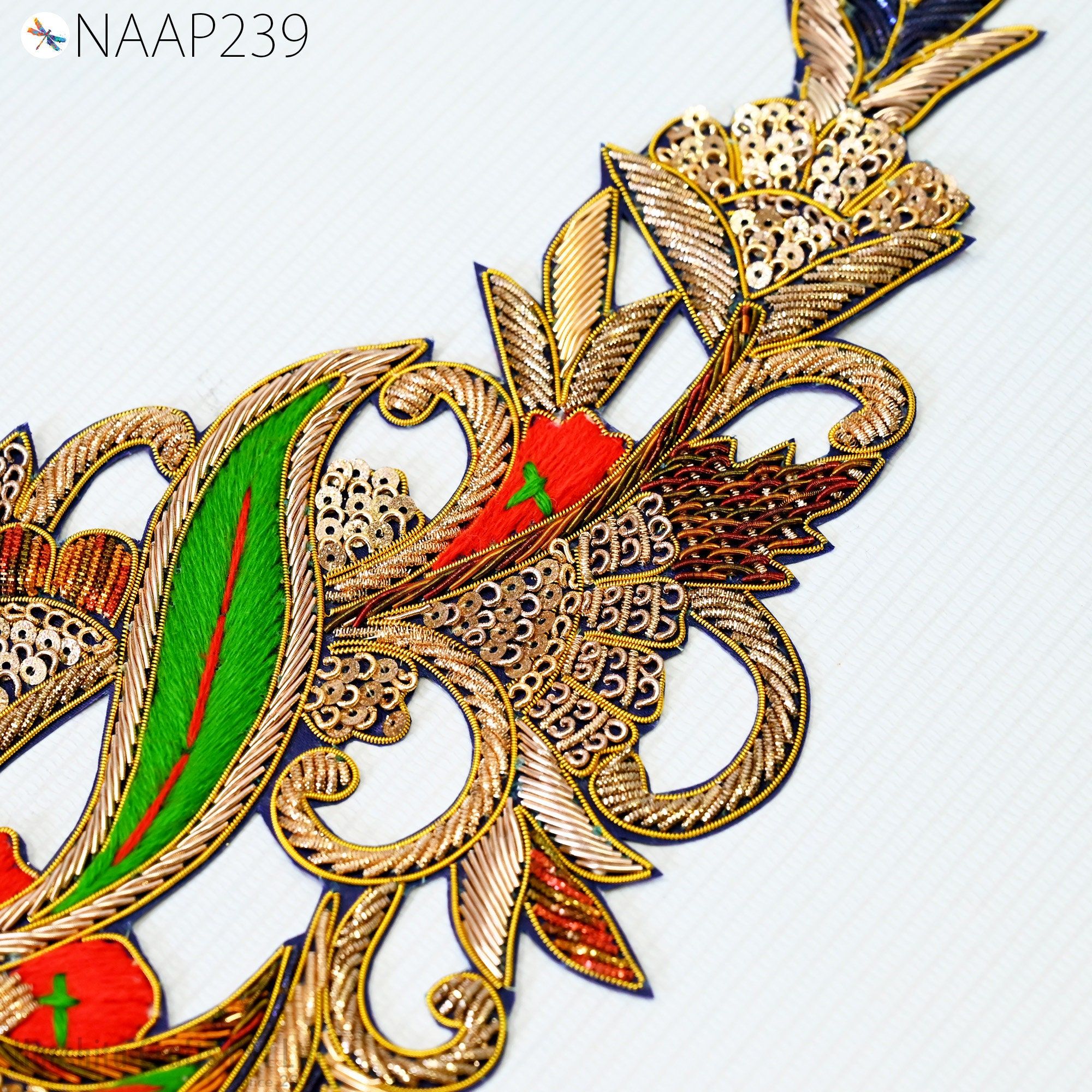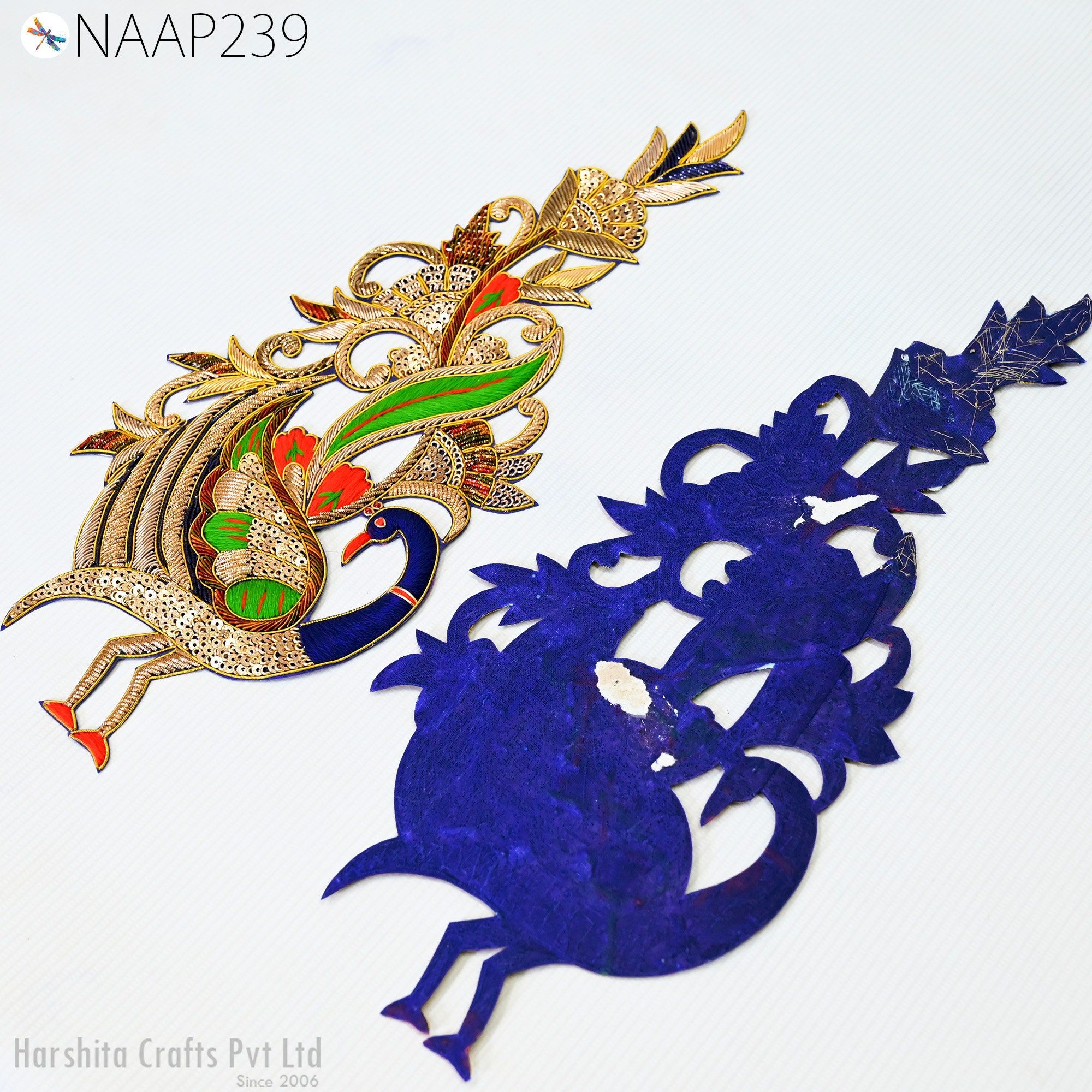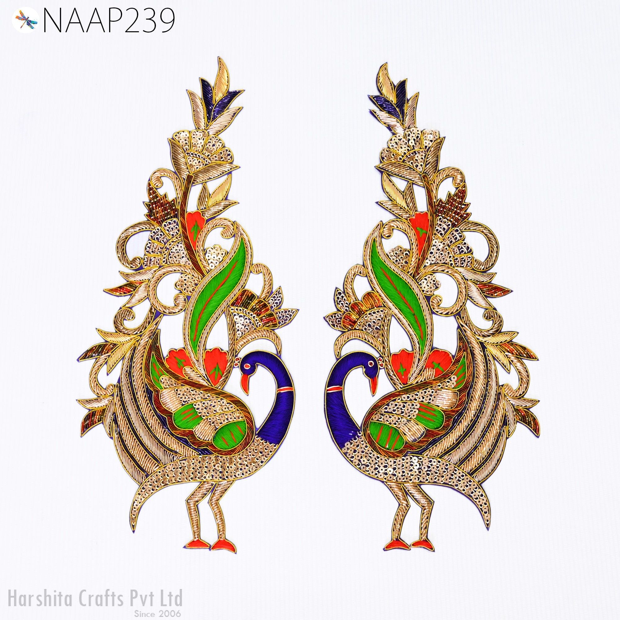🔸Add artisan charm and bold elegance to your next creation—order your Peacock Zardozi Appliqués today!