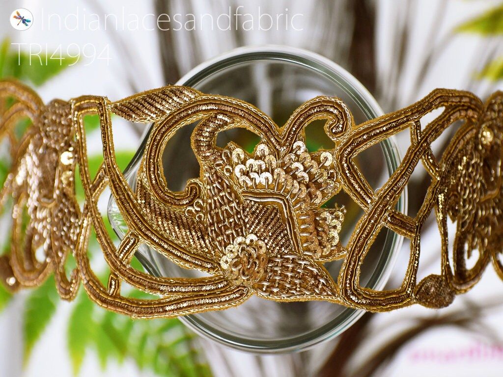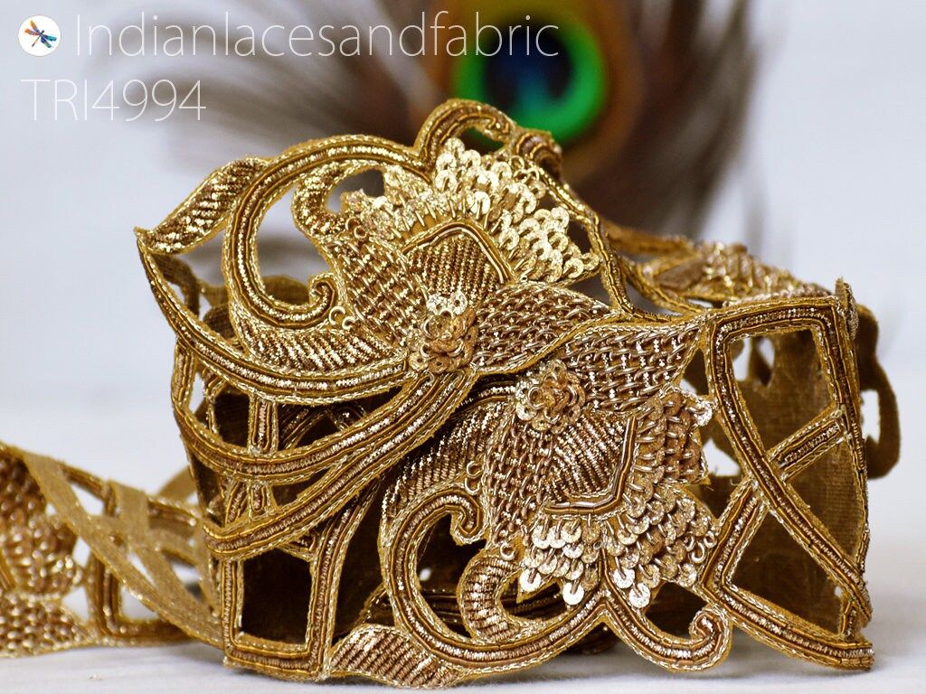 Zardosi Gold Trim: Handcrafted Indian Saree Border, Bridal Sash (2.5" Wide)