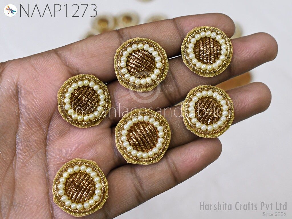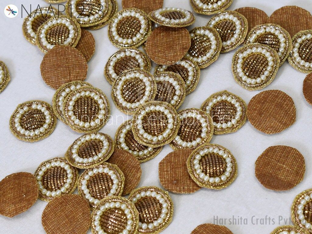 Small Round Design Appliques extremely beautiful sew on applique. Each of them is decorated with rhinestones, Zardozi work and Zari Thread to make it a perfect piece for embellishing a wedding dress, Wedding Skirt or a sari. Bridal Belt, Sari, Dresses, Cushion Covers, Headbands making, hats, gown, Purse etc.